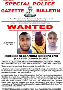 The Nigeria Police encourages any member of the general public who has useful information that will lead to the prompt arrest of the wanted Iroegbu to report to the nearest police station.